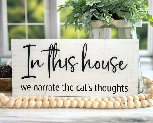 In This House We Narrate the Dog's/Cat's Thoughts - Funny Wood Sign