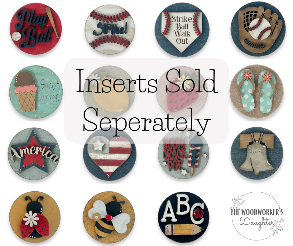 ALL INSERTS ARE SOLD SEPARATELY and come with magnetic attachments secured to the back, which allows them to be easily removed and replaced with a new insert!