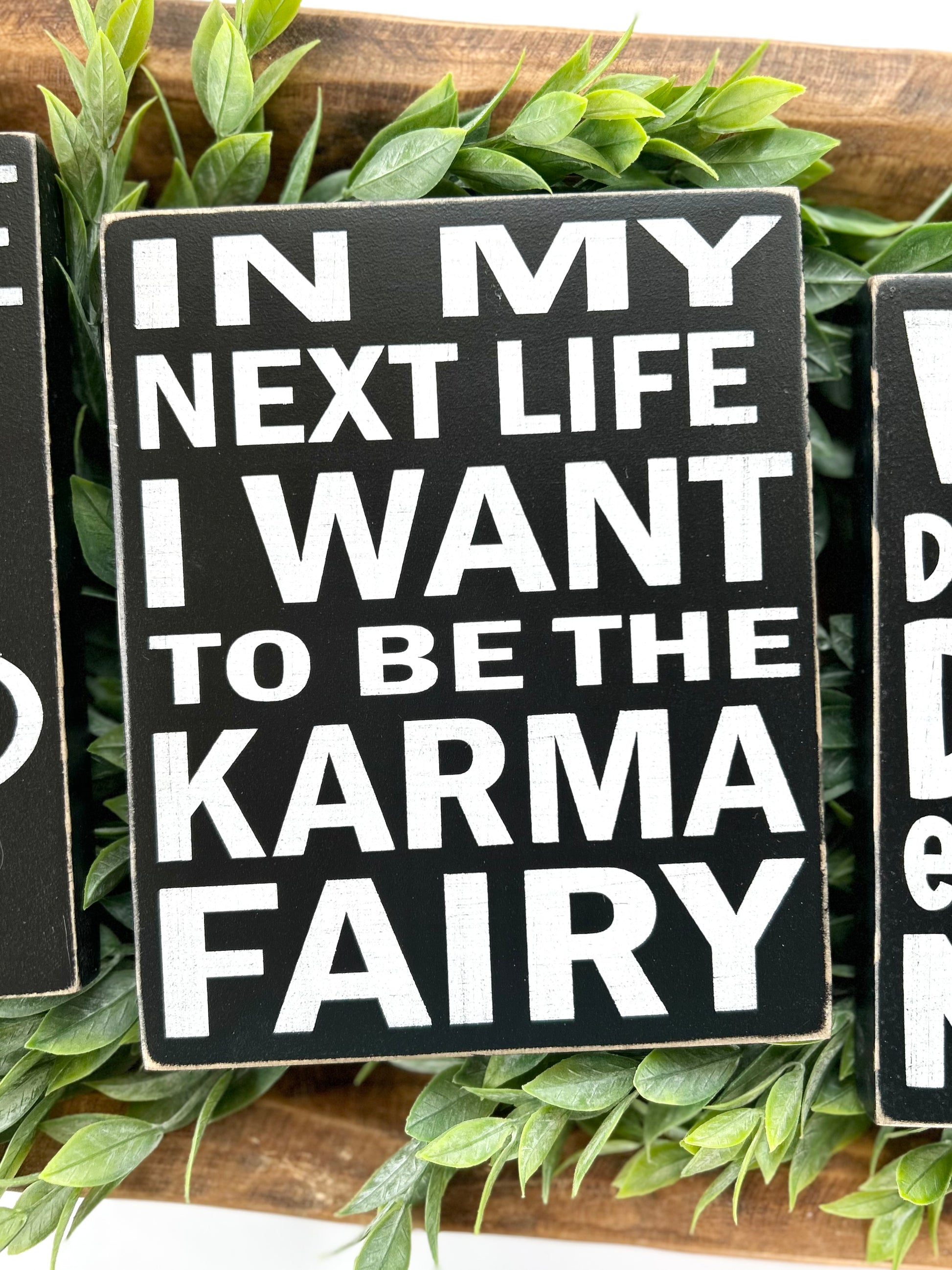 In My Next Life I Want To Be The Karma Fairy - Wood Sign
