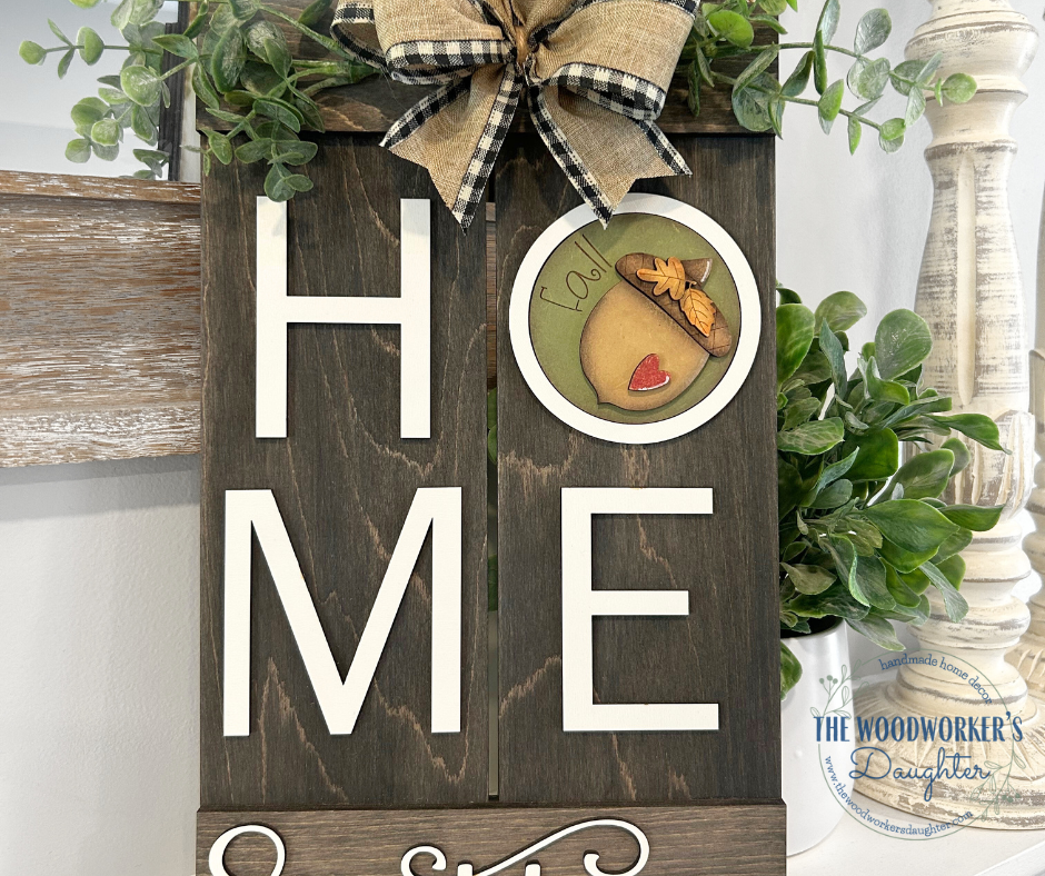 Fall Acorn 3" Interchangeable Insert - Designed to coordinate with our 3" Interchangeable Collection. Each insert is crafted from laser cut Baltic Birch, hand painted, and distressed for a rustic primitive look.