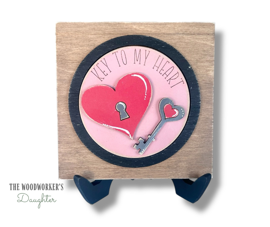 Key to my Heart 3" Interchangeable Insert- Designed to coordinate with our 3" Interchangeable Collection. Each insert is crafted from laser cut wood, hand painted, and distressed for a rustic primitive look. Interchangeable Bases Sold Separately.