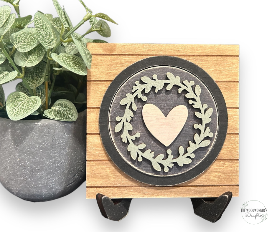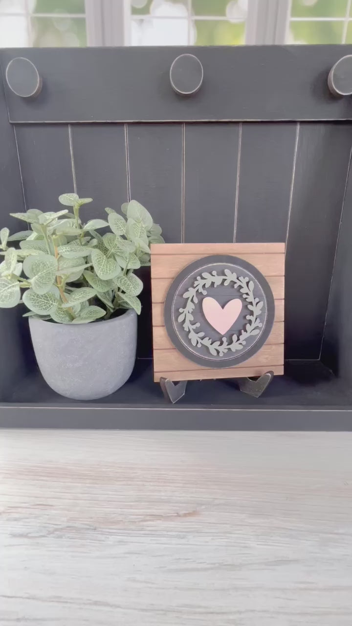 Interchangeable Shiplap Frames - a fun versatile piece, perfect for every holiday, season and occasion! Crafted from laser cut Baltic Birch and hand painted, it features seasonal interchangeable 3" inserts (sold separately). Would make a great addition to your coffee bar! Measures approximately 4.5"x4.5".