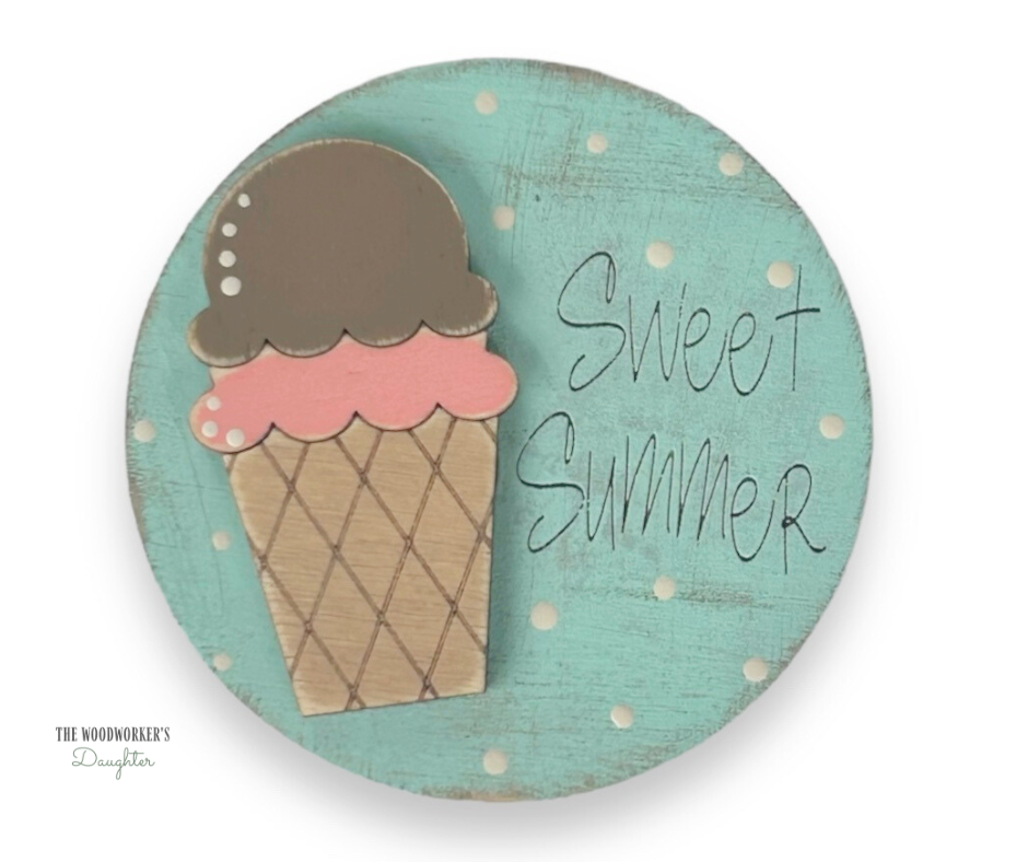 Ice Cream Cone 3" Interchangeable Insert - Designed to coordinate with our 3" Interchangeable Collection. Each insert is crafted from laser cut Baltic Birch, hand painted, and distressed for a rustic primitive look.